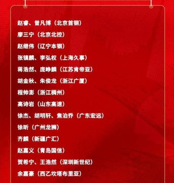 入選集訓隊的21人分別是趙睿、曾凡博、趙繼偉、張鎮麟、李弘權、蔣浩然、龐崢麟、胡金秋、朱俊龍、程帥澎、高詩巖、徐傑、胡明軒、焦泊喬、徐昕、齊麟、趙嘉義、賀希寧、王浩然、餘嘉豪。這21人集訓名單中趙繼偉、徐傑和齊麟再次入選讓人意想不到,郭士強的愛徒李祥波沒能入選大傢可以理解,周琦因為眼傷的問題不僅缺席瞭首鋼隊大量的比賽,同時也缺席國傢隊集訓隊這還是讓很多人沒有想到的,從這裡可以看出他的眼傷確實比較嚴重。