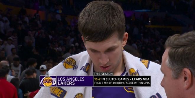 根據數據統計,本賽季,湖人在關鍵時刻(最後5分鐘分差不超過5分)的比賽戰績是15勝2負,領跑全聯盟。