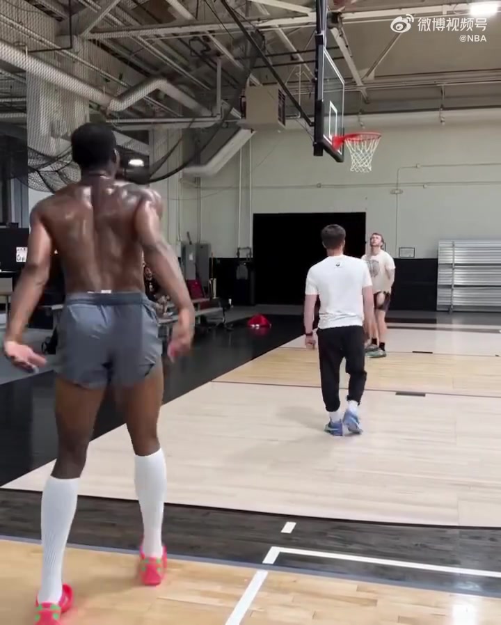 这是增重了训练师分享库明加夏日特训一身肌肉进行远投训练