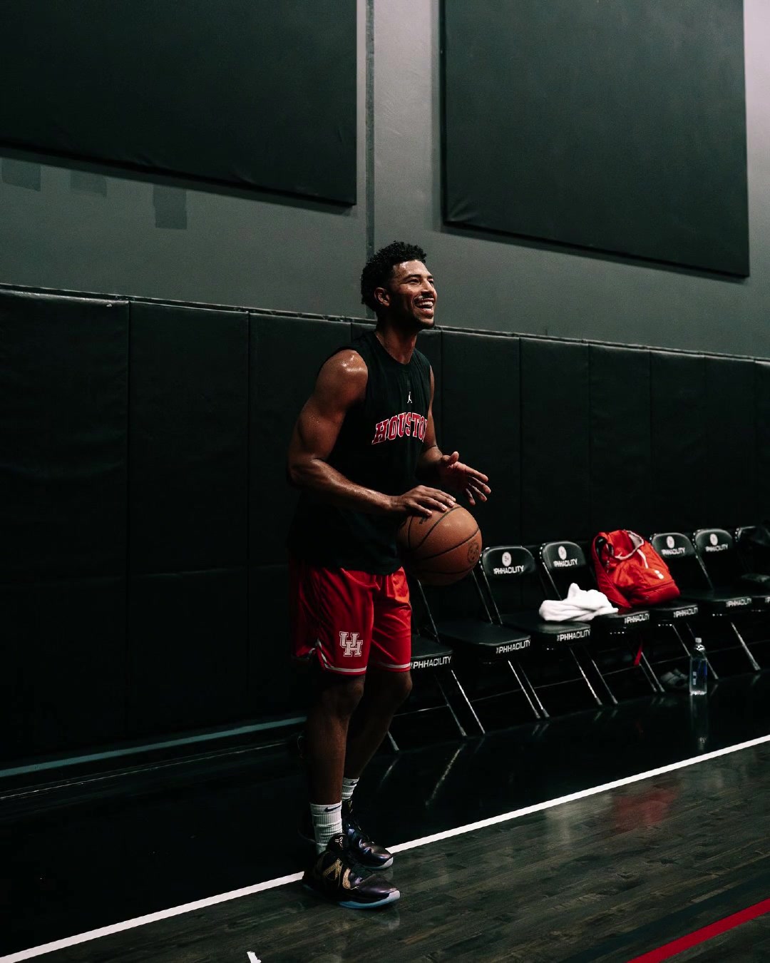 都是休斯顿来火箭吧格莱姆斯穿着休斯顿大学的球衣训练