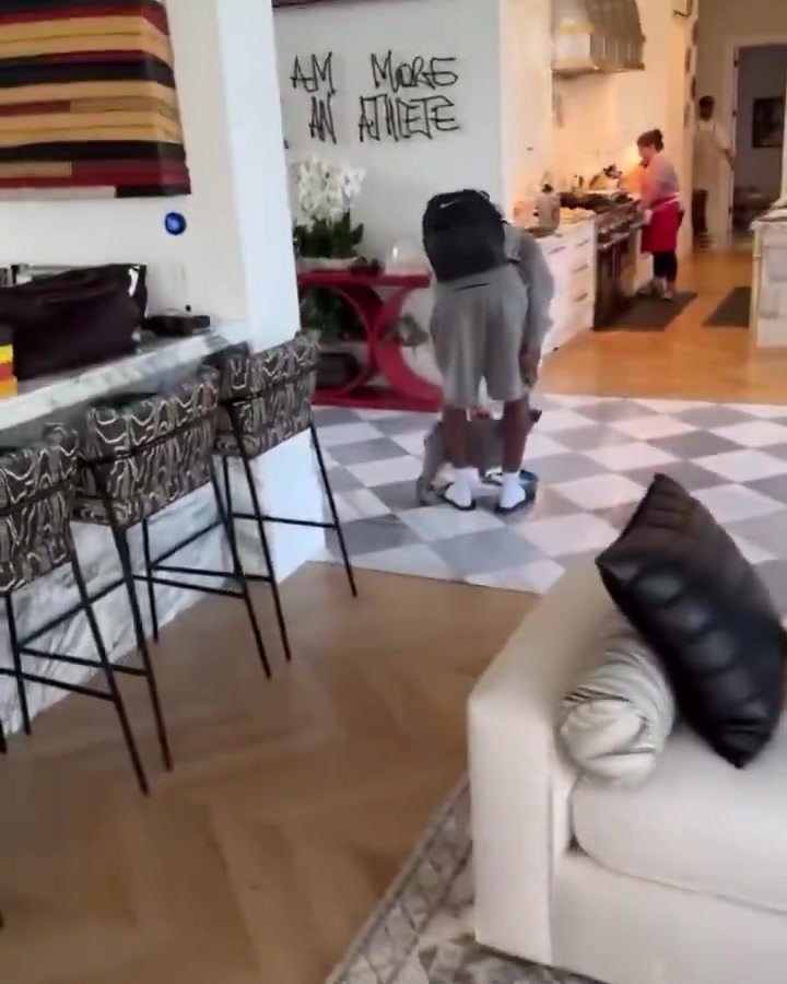 逗比老爹布莱斯刚回到家詹姆斯狂笑欢迎大学生回来了