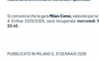 官方丨補賽將在2月19日03:45進行