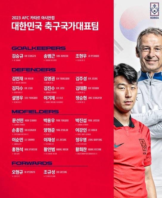 韓國足球亞洲杯大名單出爐