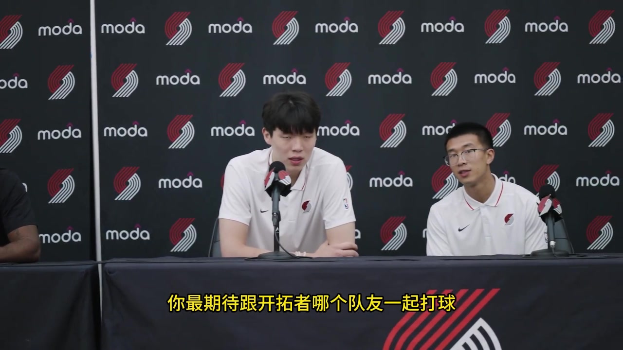 OPB记者用中文提问杨瀚森最期待和开拓者哪位队友打球翻译回复相当赞