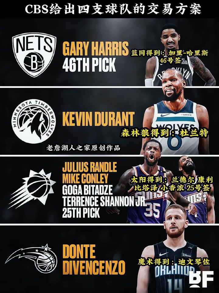 CBS给出四支球队的交易方案杜兰特最终花落森林狼