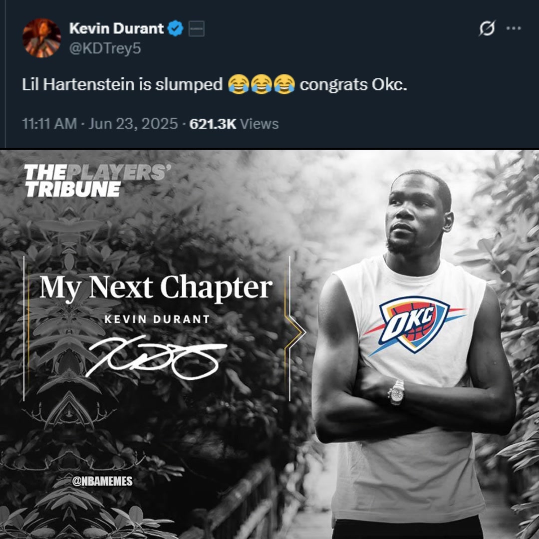 雷霆名宿杜兰特第一时间发推庆祝雷霆队史首冠