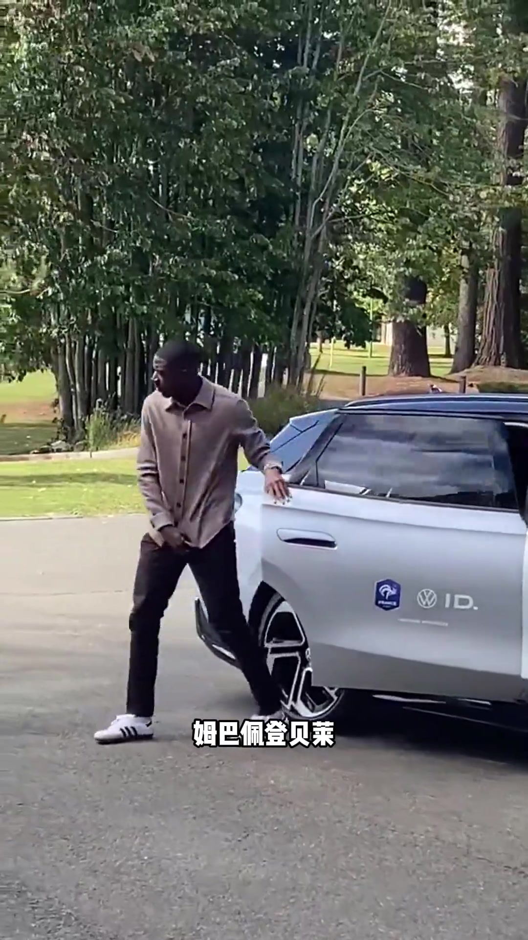 姆巴佩和登贝莱并肩而行和一旁的小图拉姆有说有笑