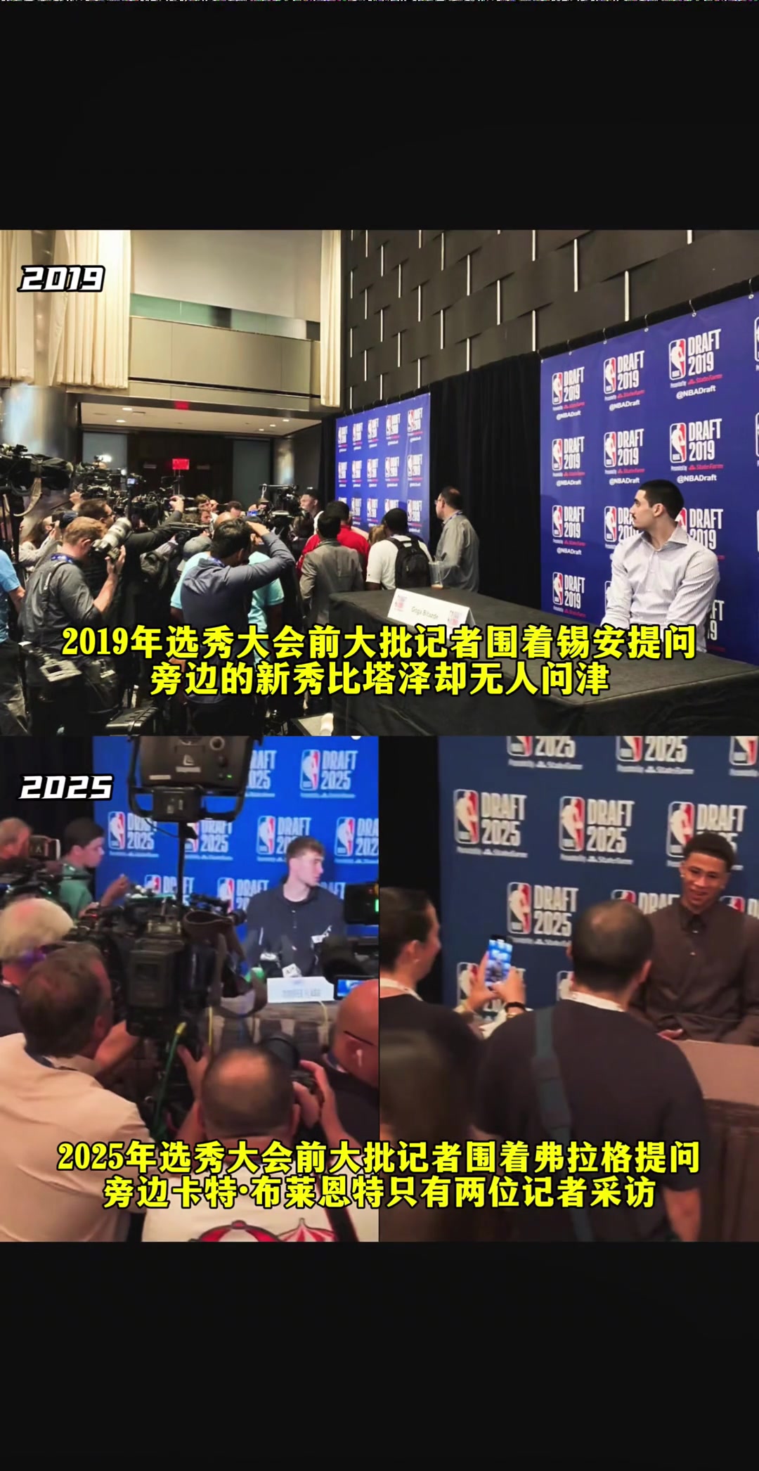 25年选秀记者包围弗拉格无视布莱恩特 像极了19年锡安比塔泽