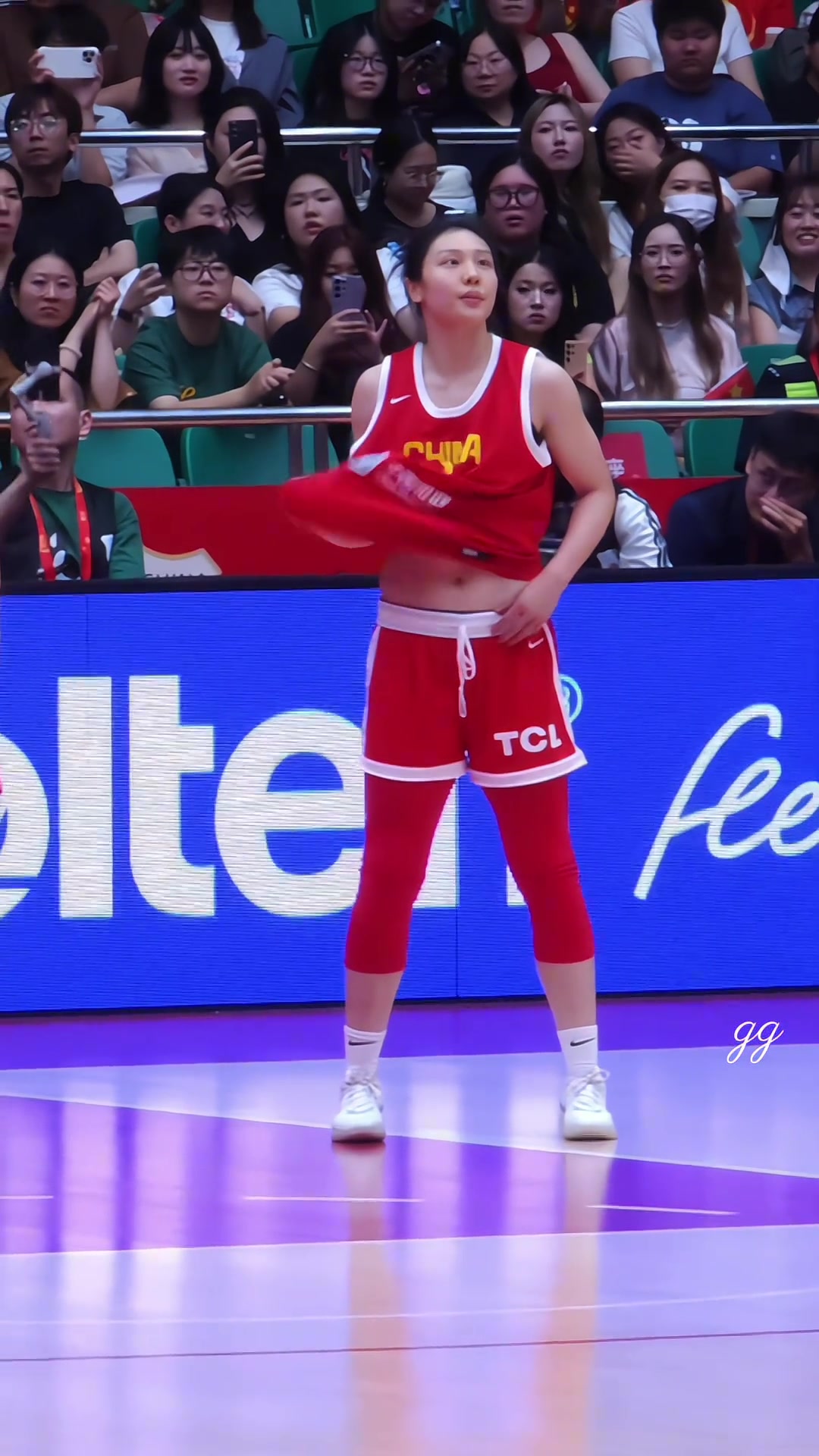 张茹最近越来越爱在球场上炫腹了