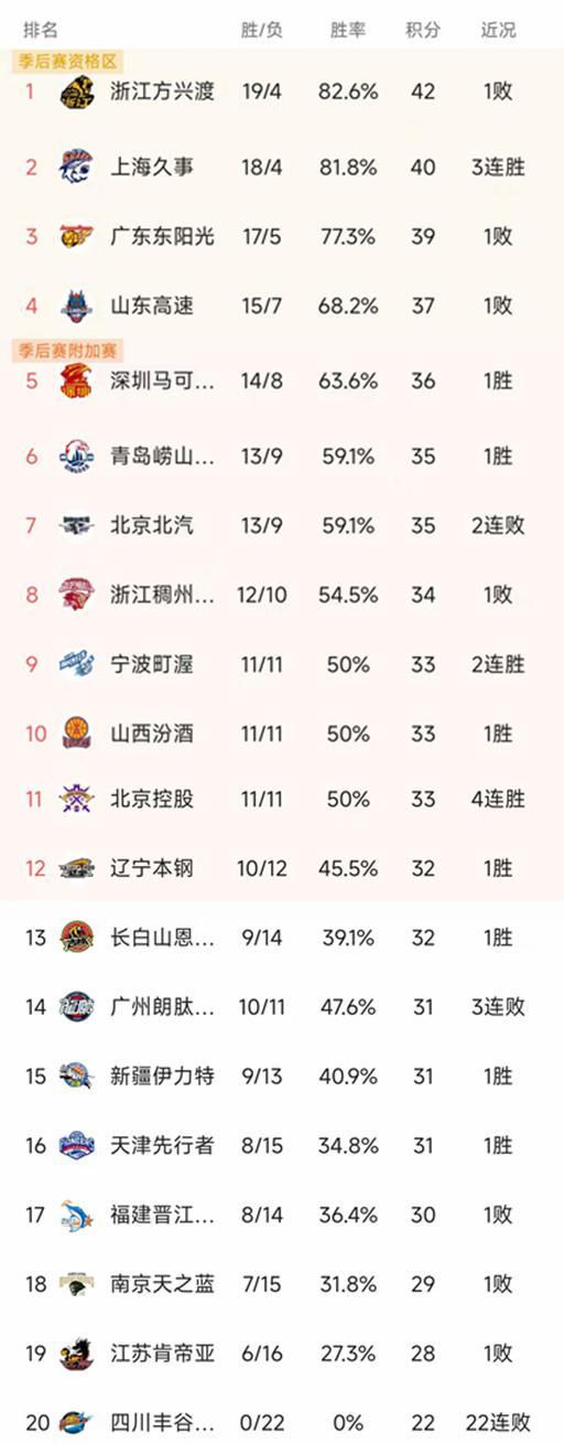 CBA最新積分榜