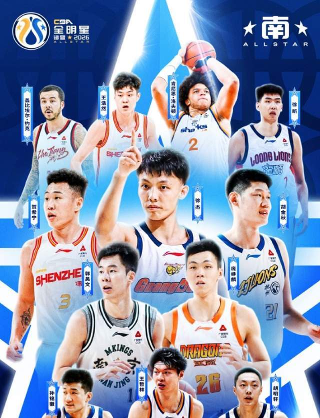 CBA全明星完整名單正式出爐,由於外援和本土球員平衡的問題,很多球員也註定要遺珠行列。入選南區全明星的球員為:(首發)賀希寧、胡金秋、郭昊文、徐傑、龐崢麟,(替補):王浩然、孫銘徽、胡明軒、徐昕、洛夫頓、王哲林、約克。入選北方全明星的球員為:(首發)曾凡博、齊麟、付豪、趙睿、廖三寧;(替補)周琦、段昂君、高詩巖、克裡斯、迪亞洛、林庭謙、趙繼偉。值得一提的是,寧波、吉林、福建、四川這四支球隊沒有球員入選正賽名單,而王浩然、徐昕、約克、郭昊文、龐崢麟;廖三寧、段昂君、克裡斯這八名球員都是生涯首次打全明星正賽。