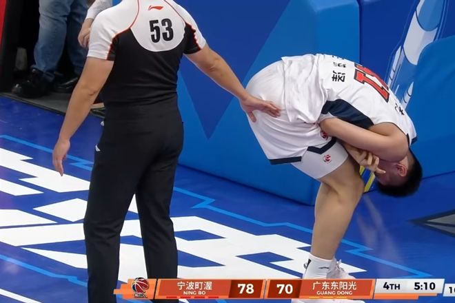 王洪澤補籃得分,小將王洪澤手臂和魯吐佈拉纏在一起,慘遭受傷摧殘。胡明軒命中關鍵三分,在徐傑傷退,多人五犯的情況下,需要他的發揮。王洪澤手臂受到影響,兩罰不中。寧鴻宇三分穿雲箭,一擊命中。