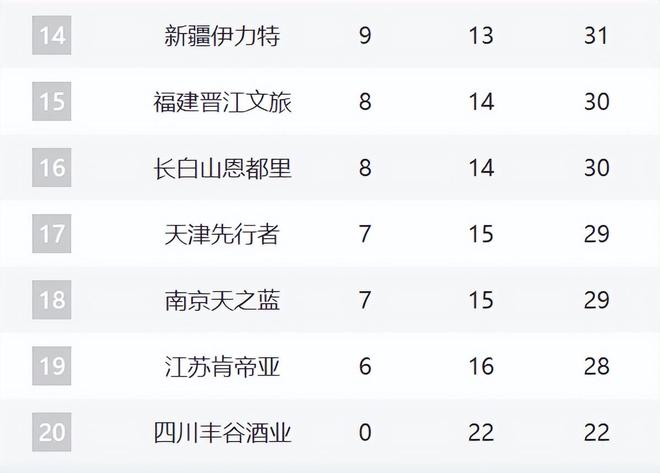 14-20分別是新疆、福建、吉林、天津、同曦、江蘇和四川。新疆這輪擊敗四川,不過窗口期對他們非常重要,看看格蘭能不能建立好的攻守體系。福建、吉林、天津、同曦、江蘇這輪全部都輸球瞭,特別是吉林已經三連敗,估計福建和吉林的戰績會持續下跌。至於同曦,這輪郭昊文沒有打,導致他們潰敗上海。天津和江蘇最近的趨勢不錯,但分別輸給瞭遼寧和深圳,但後續依然有希望成為攪局者。四川22連敗,氣勢越來越低瞭。