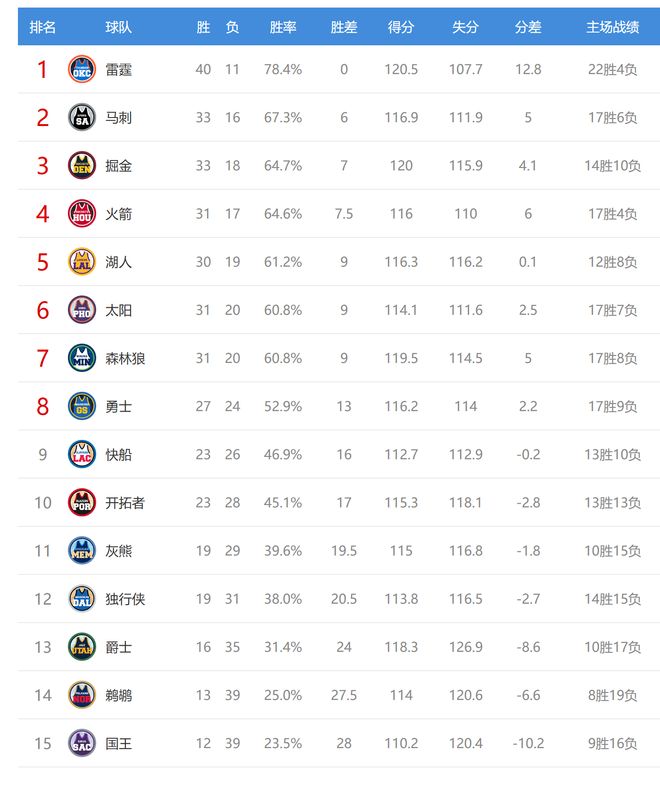 北京時間2026年2月4日,今日NBA有10場比賽,湖人、勇士、掘金、雷霆、太陽、獨行俠、開拓者、爵士參與其中,賽後西部排名發生瞭變化。
