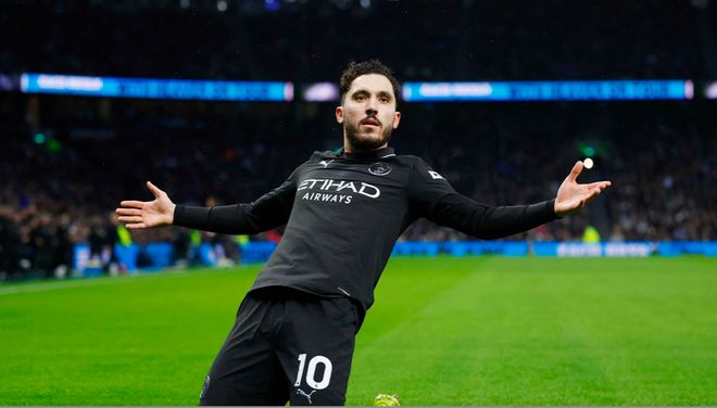 第44分钟,德拉古欣的传球被罗德里抢断,B席倒地助攻,塞梅尼奥一蹴而就,打进加盟曼城5场比赛的第4球。
