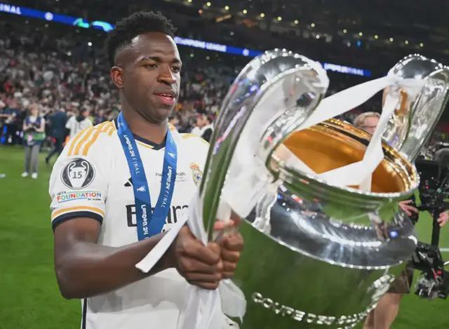 维尼修斯当然有姆巴佩没得比之处。2021-22赛季,皇马赢得欧冠冠军时,本泽马是进攻核心,边路主力维尼修斯功不可没。2023-24赛季,本泽马已经离队,维尼修斯作为进攻核心帮助皇马赢得欧冠冠军。2024年,维尼修斯一度也是金球奖最大热门,身价到达世界第一的2亿欧元,不过最后时刻被罗德里“逆袭”,屈居第二,随后赢得世界足球先生。