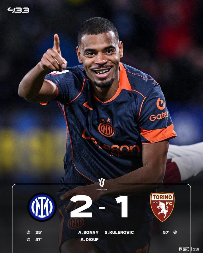 意大利杯1/4決賽,國米2-1擊敗都靈,晉級四強,將對陣那不勒斯和科莫之間的勝者。博尼先拔頭籌,迪烏夫再下一城,庫萊諾維奇扳回一球,博尼傷退,普拉蒂進球被吹。