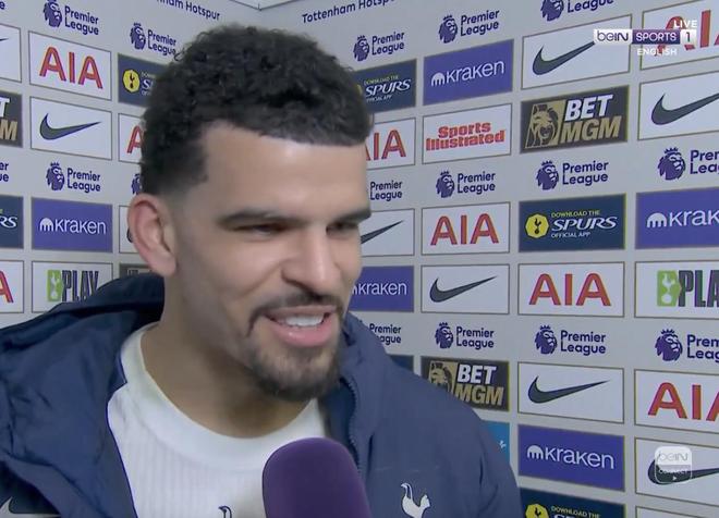 英超第24輪,熱刺主場2-2戰平曼城,賽後,此役上演梅開二度的熱刺前鋒索蘭克接受瞭拜因體育的采訪。