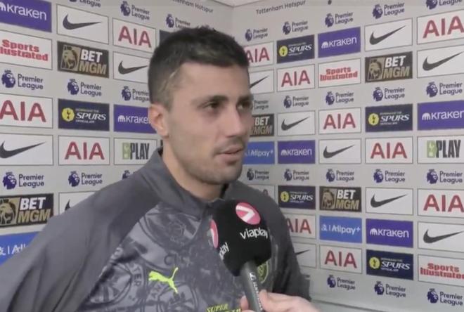 英超第24輪,曼城客場2-2戰平熱刺,賽後,曼城中場羅德裡接受瞭Viaplay Fotball的采訪。
