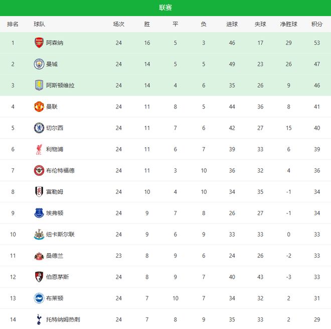 北京時間2月2日凌晨,英超第24輪繼續開打,聯賽B6的多傢豪門聯手出擊,曼聯主場3-2拿下富勒姆,反超切爾西殺回前四,卡裡克真的神瞭;曼城客場2-2被熱刺逼平,新援塞梅尼奧又進球,瓜迪奧拉真的撿到寶;高居聯賽第三的維拉,主場大爆冷門不敵佈倫特福德;諾丁漢森林主場1-1戰平水晶宮,保級形勢嚴峻;此役最開心的當屬阿森納主帥阿爾特塔,曼城與維拉雙雙爆冷,領先優勢繼續保持,至於曼聯,雖然近期表現神勇,但是他們爭四或許就是極限吧。