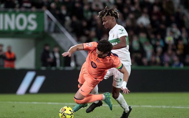 虽然埃尔切实力不占优,且两队的交手记录处于绝对的下风,但是主场作战的埃尔切丝毫不怵巴萨,敢于将节奏加快,并且打对攻。两个犀利的突破,加上前场高压逼抢,一度迫使巴萨的防线非常狼狈。