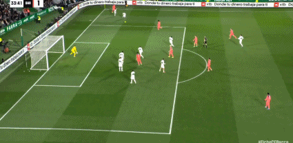 第29分钟,阿尔瓦罗-罗德里格斯反越位单刀低射破门,埃尔切1-1!