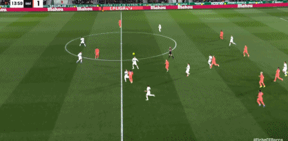 第42分钟,费尔明包抄近距离打门,皮球高出横梁