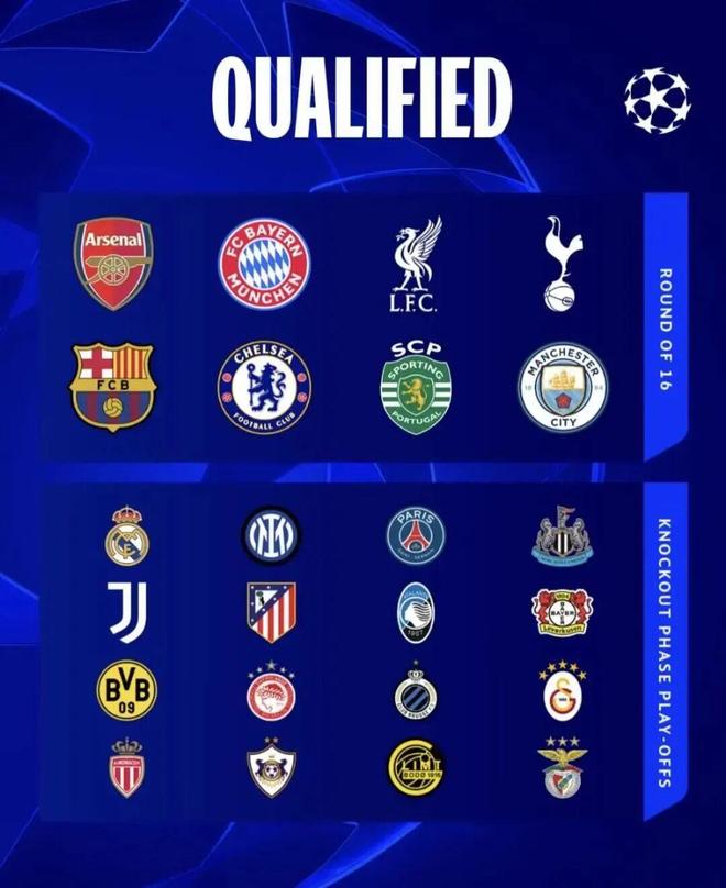跌入淘汰赛附加赛的球队则构成了豪华阵容。其中,种子球队(第9至16名)包括:皇家马德里、国际米兰、巴黎圣日耳曼、纽卡斯尔联、尤文图斯、马德里竞技、亚特兰大、勒沃库森。皇马在末轮前高居第三,一场失利让他们直接跌至第九,不得不为16强名额再战一轮。