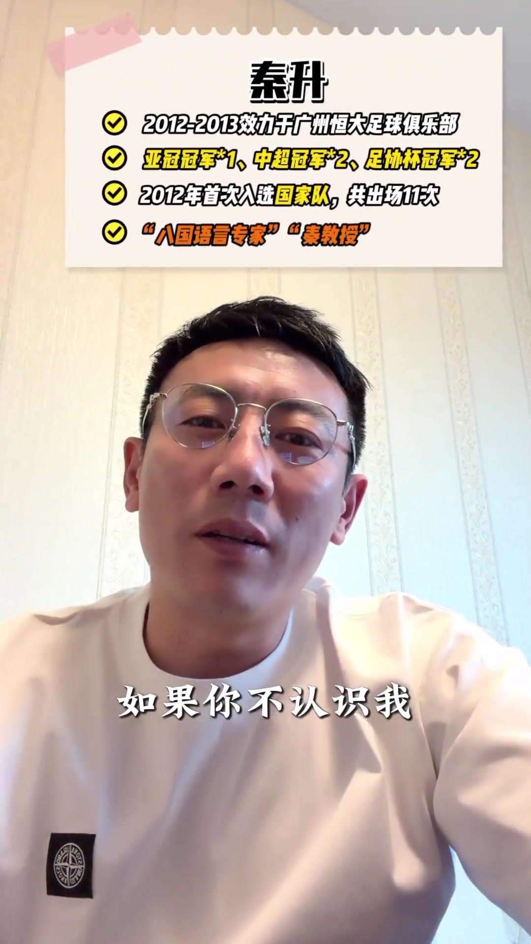 秦升开通社媒自我介绍中场铁闸语言大师
