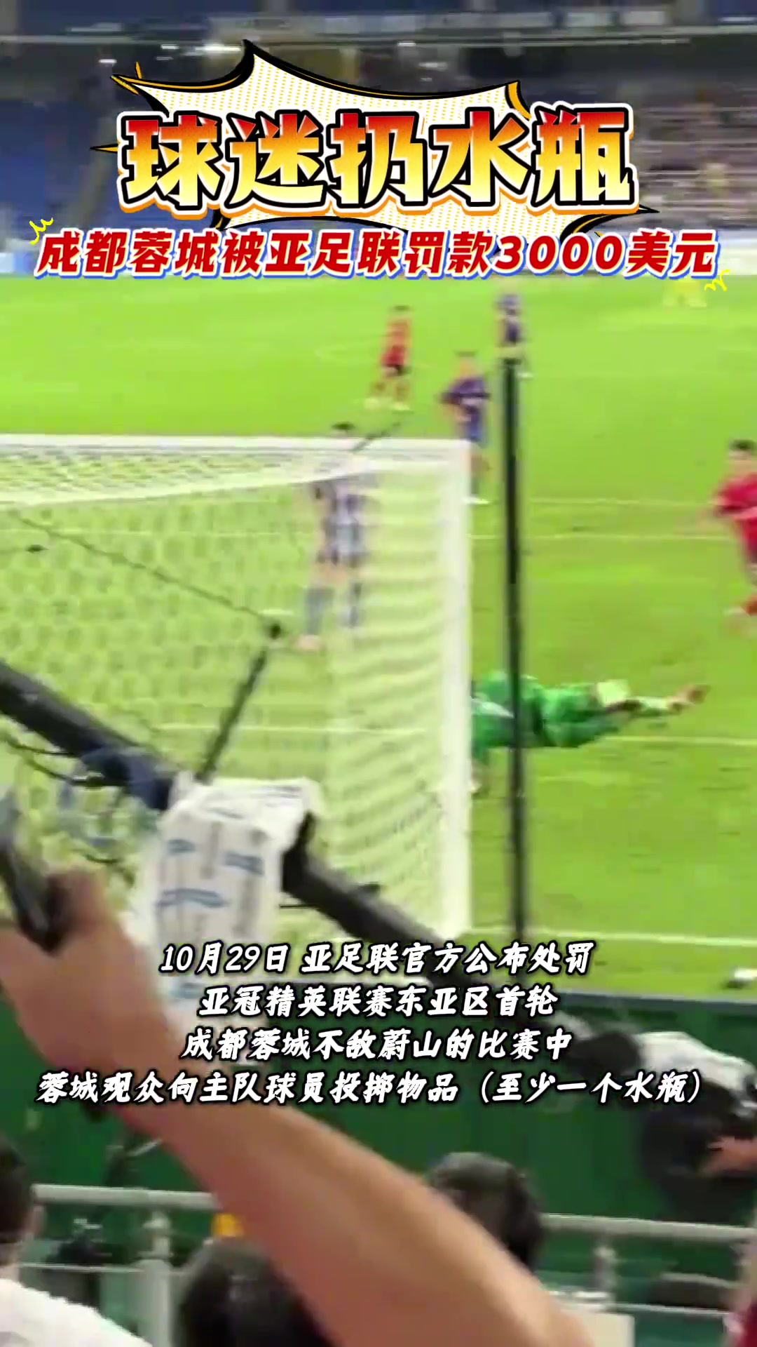 成都蓉城球迷亚冠客场观赛扔水瓶俱乐部被亚足联罚款