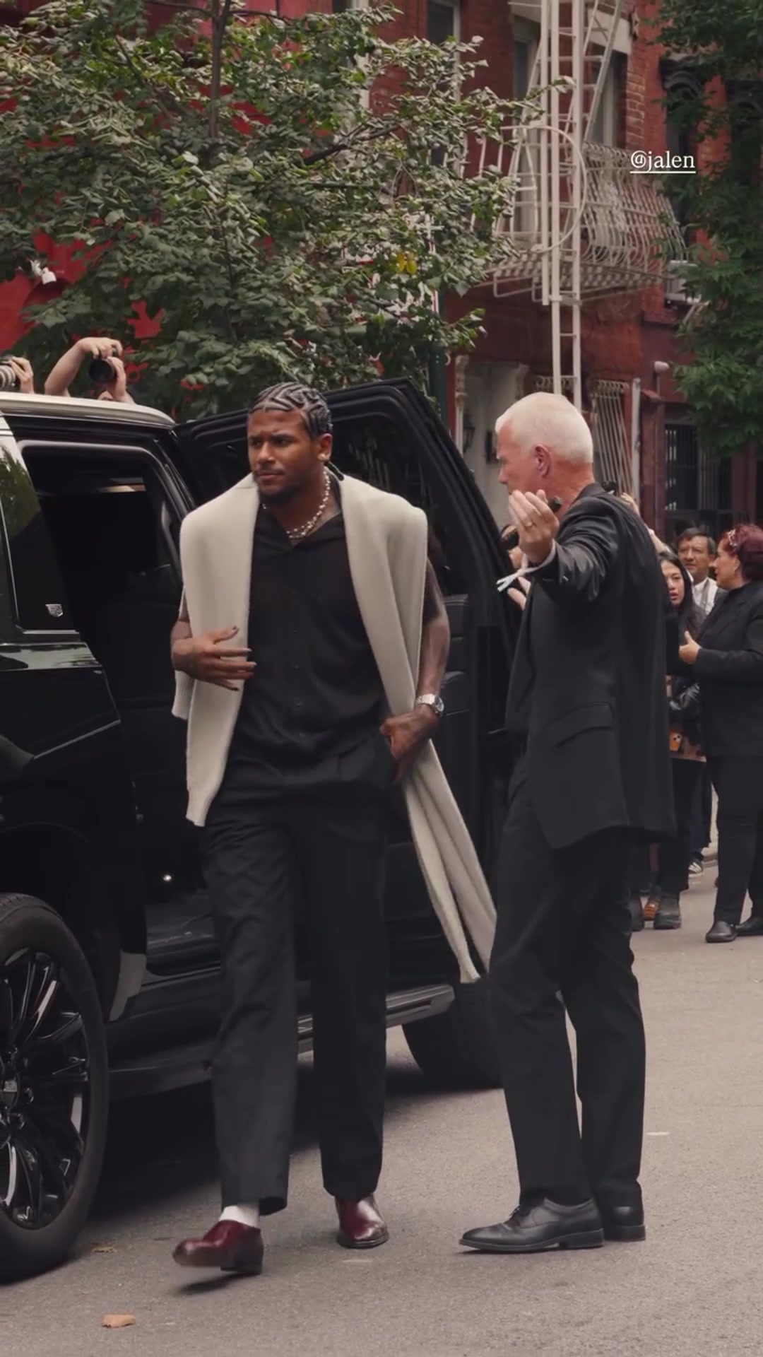 结果被拍到在街头争吵杰伦-格林与40岁女友本去参加时装周