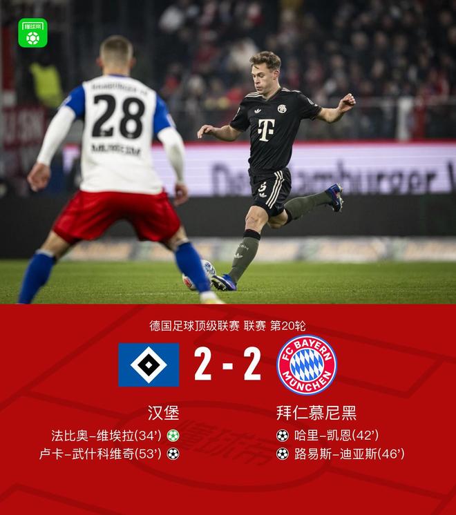 剑南春丨拜仁两度中框2-2汉堡,凯恩破门,迪亚斯替补建功