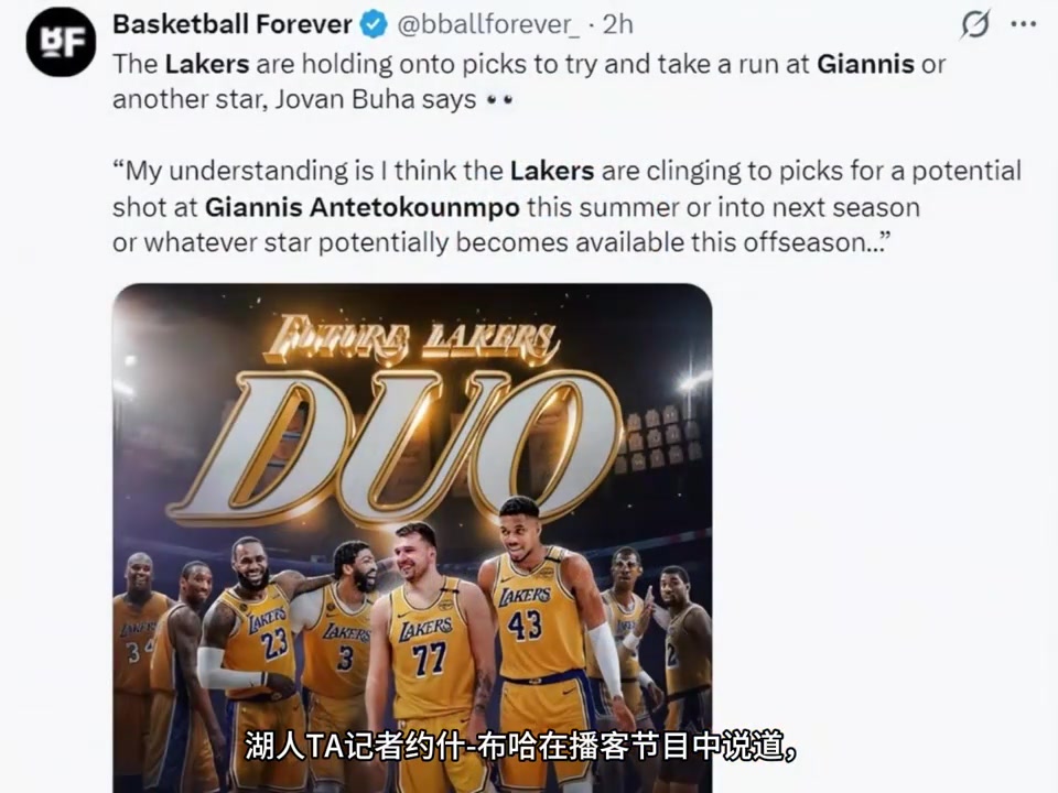 炸裂湖人队记布哈爆料明夏欲9换1字母用3首轮等里夫斯